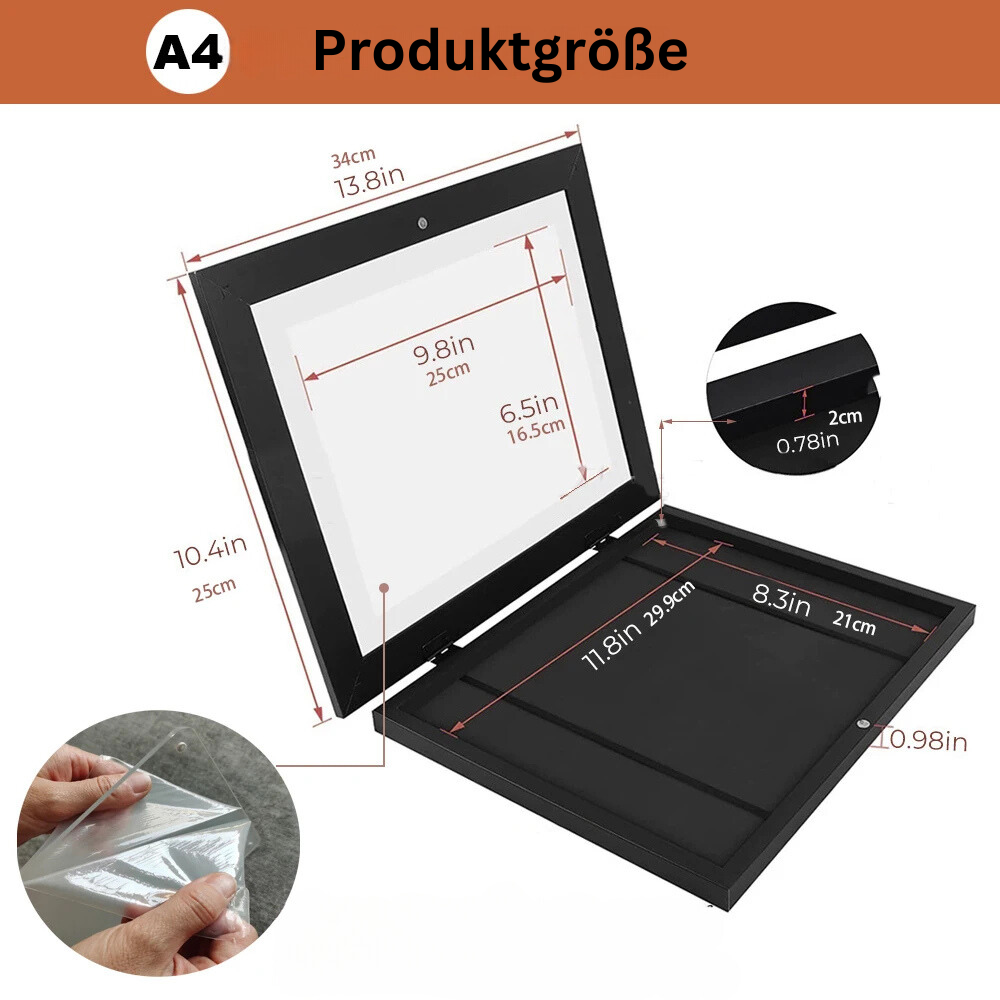 Durch den kleinen Magneten am Rahmen öffnet und schließt der Rahmen sehr leicht.